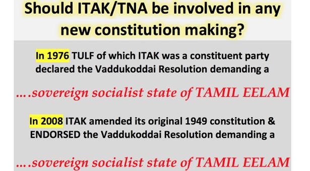ITAK is the main constituent party of the TNA & a key party promoting a new constitution & attempting to abolish the Executive Presidency. ITAK though formed in 1949 has a history of demands...
