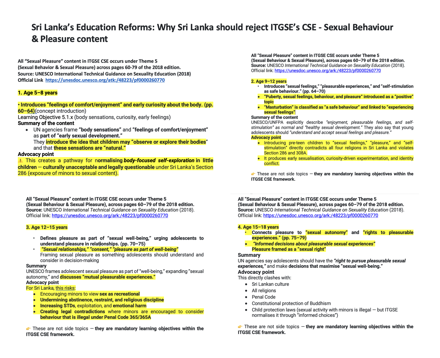 Sri Lanka’s Education Reforms: Why Sri Lanka should reject ITGSE’s CSE – Sexual Behaviour & Pleasure content