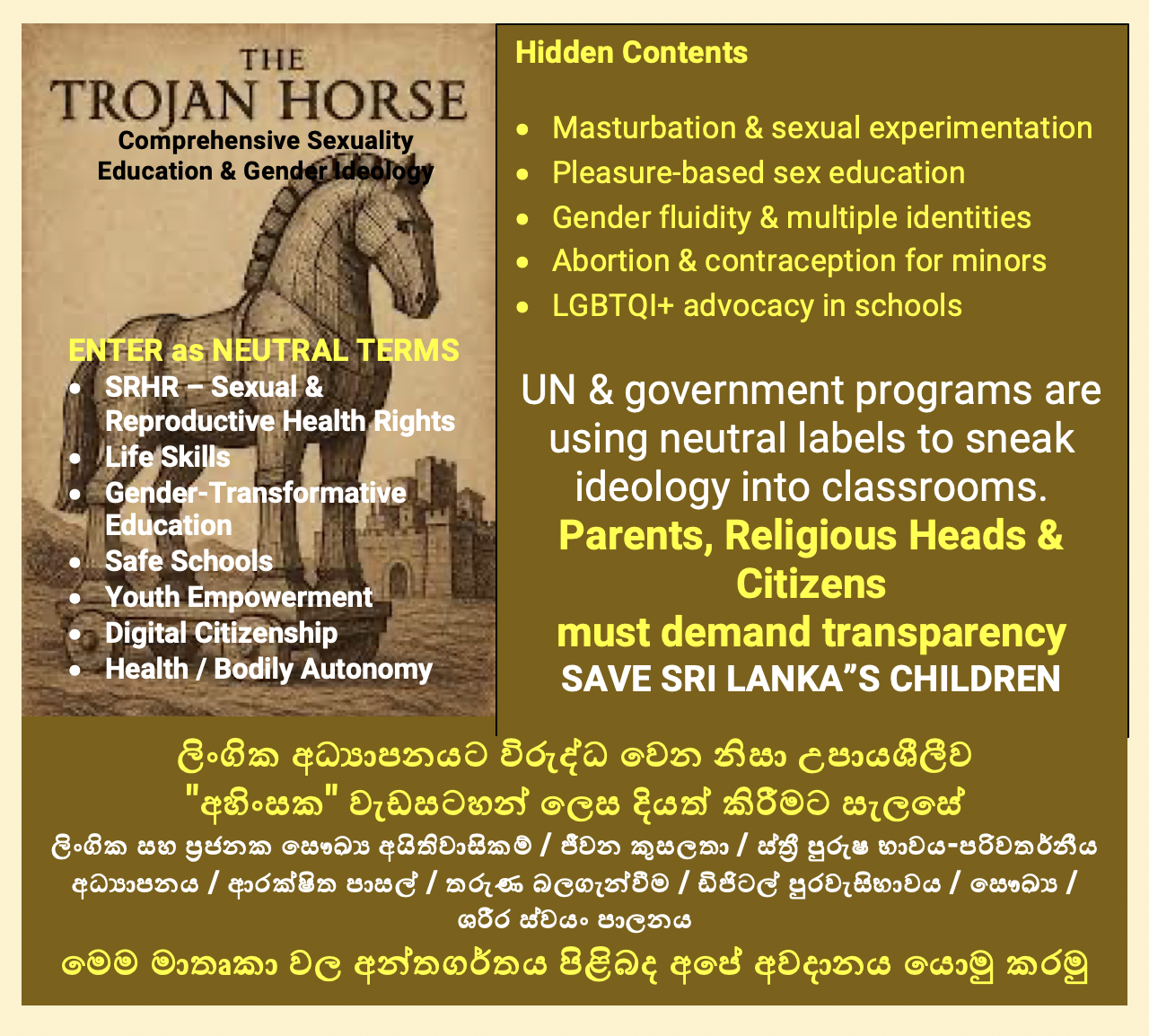 The Pattern seen worldwide is now on Sri Lankan soil Across the West, gender ideology and early sexuality teaching are now facing major reversals due to: • child mental-health damage, • parental backlash,...
