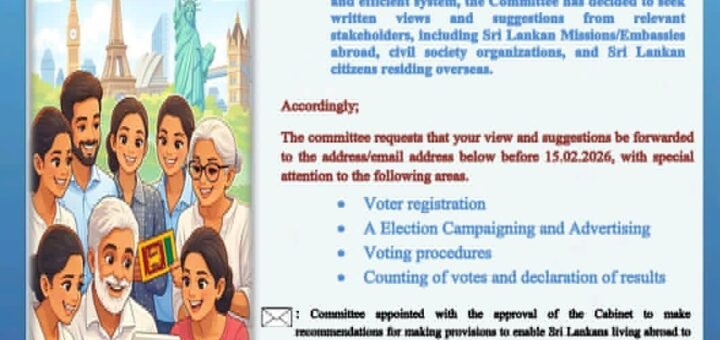 To:The Chairman and MembersElection Commission of Sri Lanka   Subject: Objection to Calling for Premature Suggestions on Overseas Voting and Opposition to Granting Online Voting Rights to Sri Lankan Citizens Residing Abroad  ...