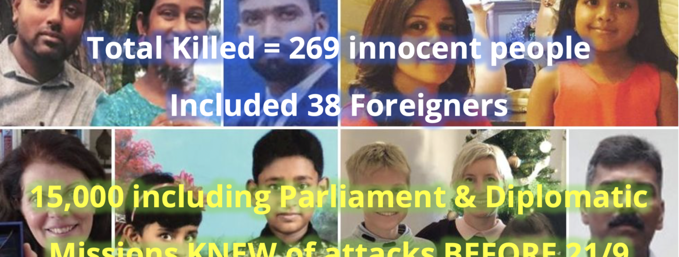 In October 2020 the former head of State Intelligence Service Senior DIG Nilantha Jayawardena told the Presidential Commission of Inquiry that nearly 15,000 people were aware of the Easter Sunday attacks 10 days … Continue reading Nearly 15,000 knew of Easter Sunday attacks including HarinF & Diplomatic Missions