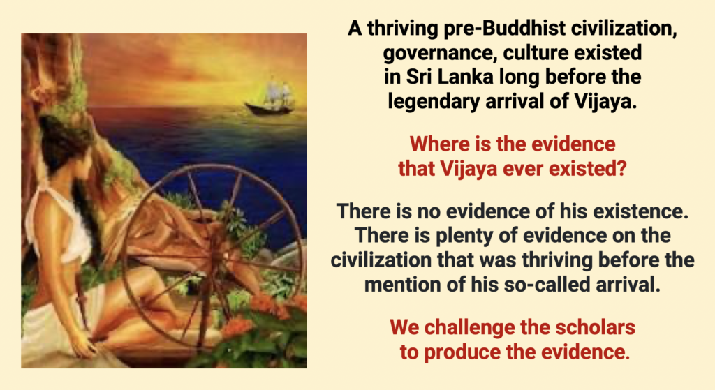 I invite scholars, historians, and archaeologists who maintain that the Sinhalese descend from Vijaya to present contemporary evidence — inscriptions, coins, archaeological findings, or historical texts — that can independently verify his existence.