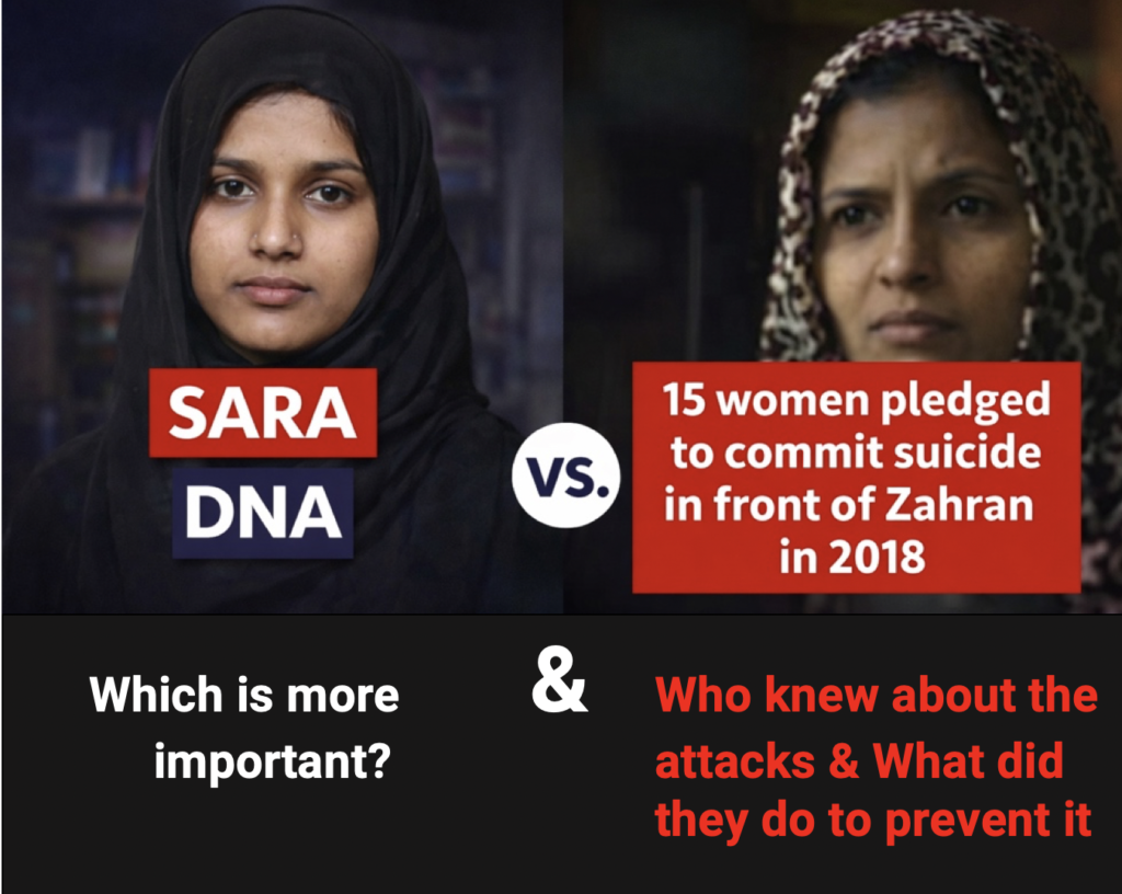 We are really curious – why are Zaharans mother never mentioned, or his sister or sister-in-laws – why only Sara Jasmin – why is the spotlight only on a 24-year-old Hindu convert?
